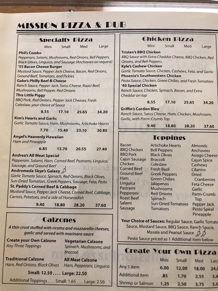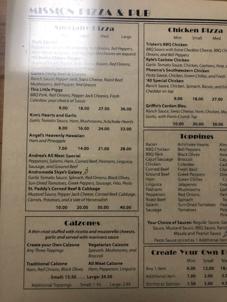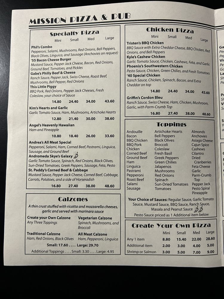 Mission Pizza and Pub, located in Fremont, CA, is a music venue specializing in pizza. With a range of utilities such as takeout, delivery, and vegan options, this establishment caters to a diverse audience. The pub is wheelchair accessible, offers outdoor seating, and provides free Wi-Fi. Live music and happy hour specials make Thursday, Friday, and Saturday nights especially lively. The menu features beer and wine, and the restaurant is open to all, with gender-neutral restrooms available. Overall, Mission Pizza and Pub offers a casual atmosphere with a variety of options for groups, families, and individuals alike.